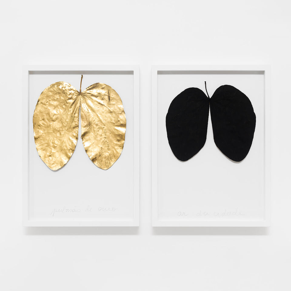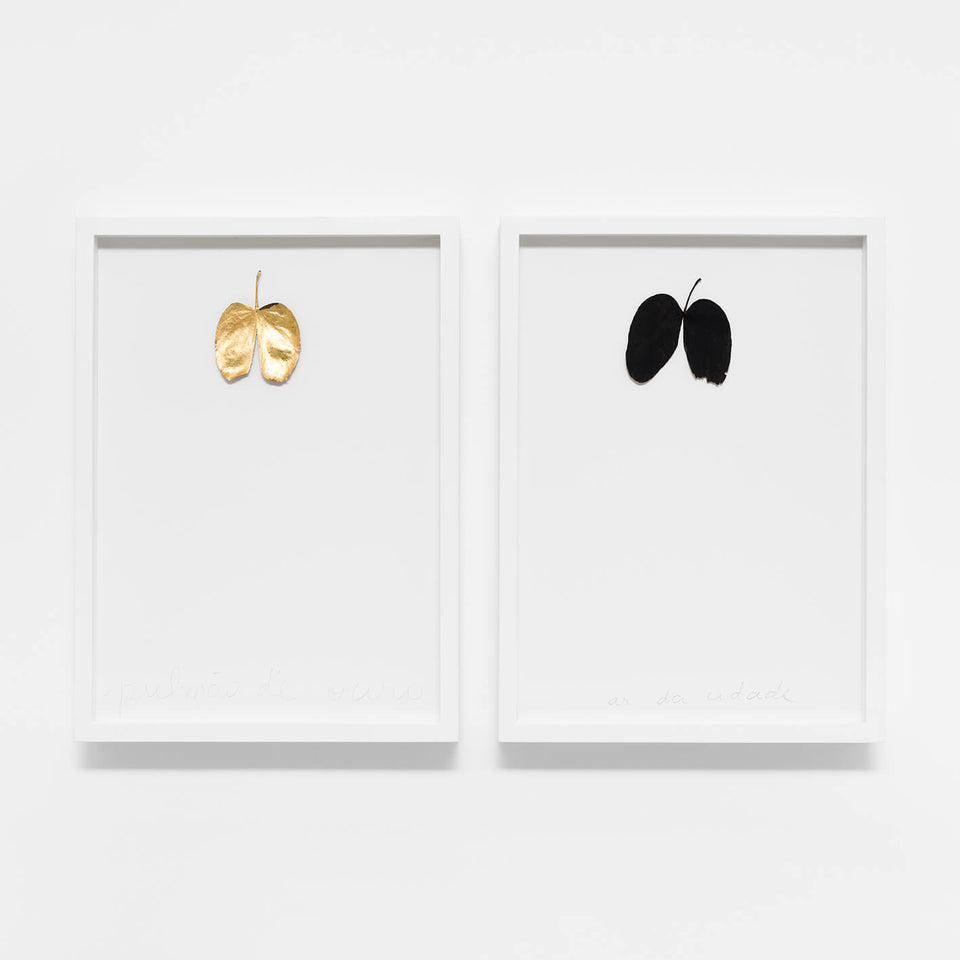 Developed with leaves collected and manipulated during the period of isolation, the work follows the artist's interests in recognizing the designs of nature through its appropriation and poetic interventions. The simple and primordial materiality of natural elements is transmuted, abandoning their original properties, to assume new meanings.